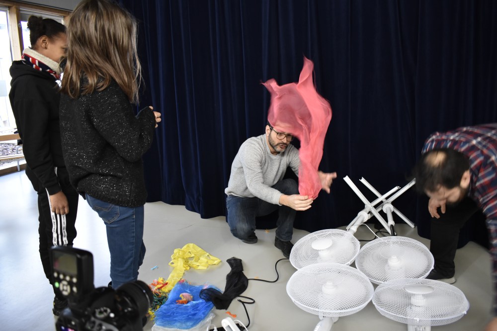 Lors des ateliers, nous avons voulu prolonger le dialogue entre expérience scientifique et photographie, dialogue qui existe depuis l’invention de celle-ci. Au fil des séances, les élèves ont alors abordé différentes thématiques : la lumière, l’air et le vent, la matière agrandie, la matière cataloguée ainsi que la modélisation en 3D. Diverses expériences ont été menées et la photographie a permis de rendre visibles des éléments habituellement difficiles à percevoir à l’oeil nu.
