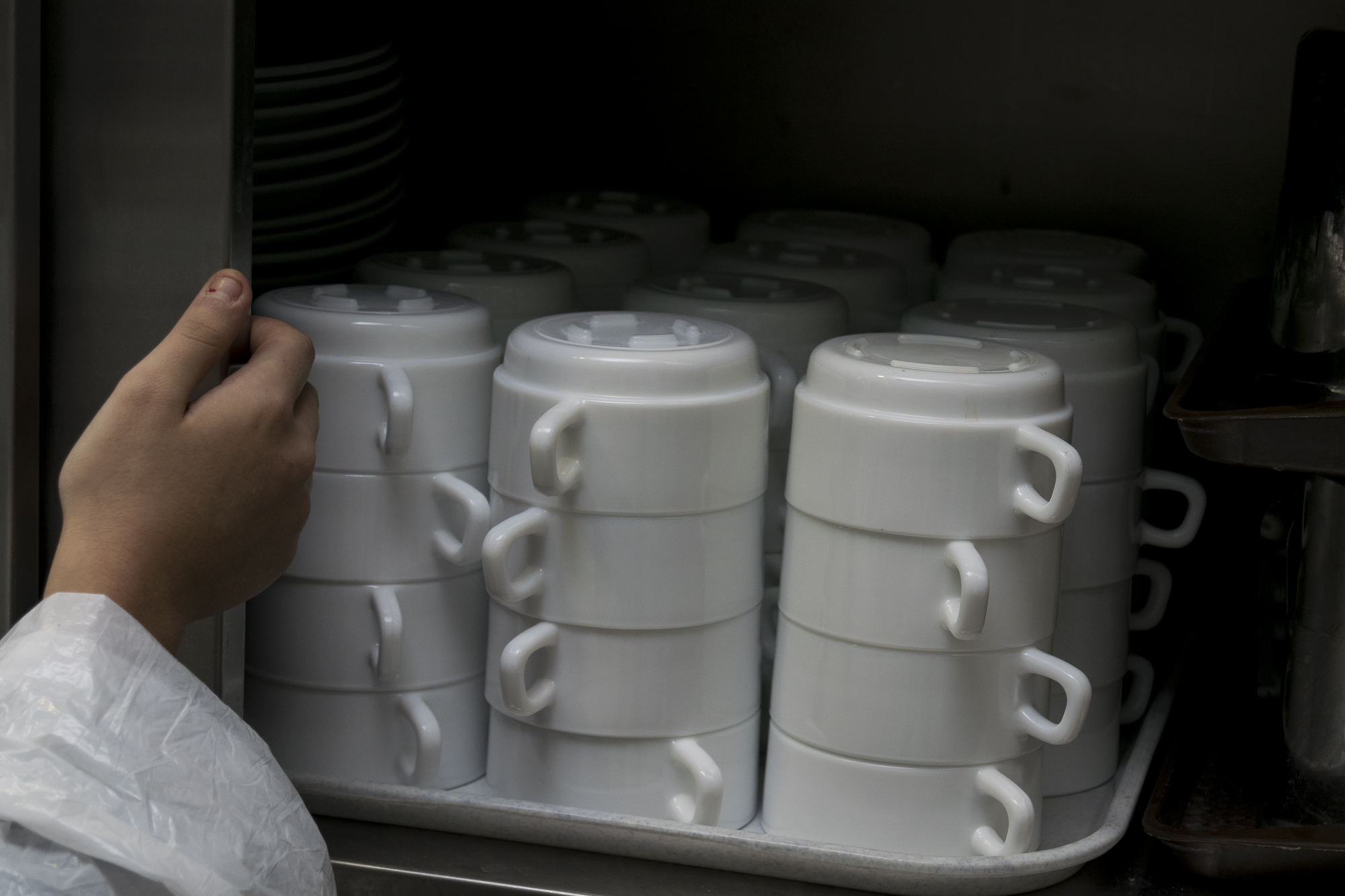 Le résultat de ces deux séances nous présente des images documentaires qui capturent les gestes et l’ambiance de la cantine et de la cuisine, mais il révèle également le potentiel plastique des matières propres à ces espaces.