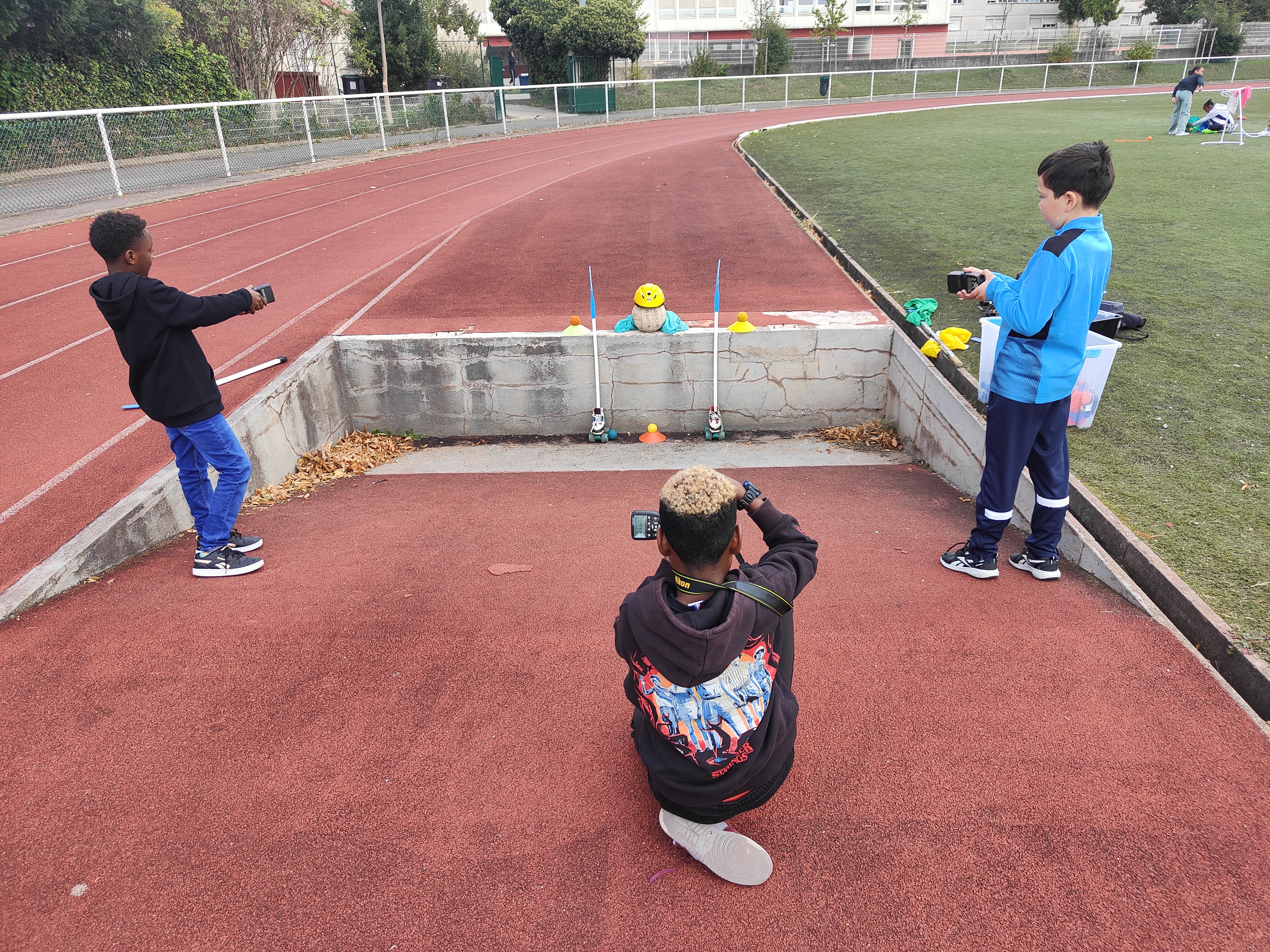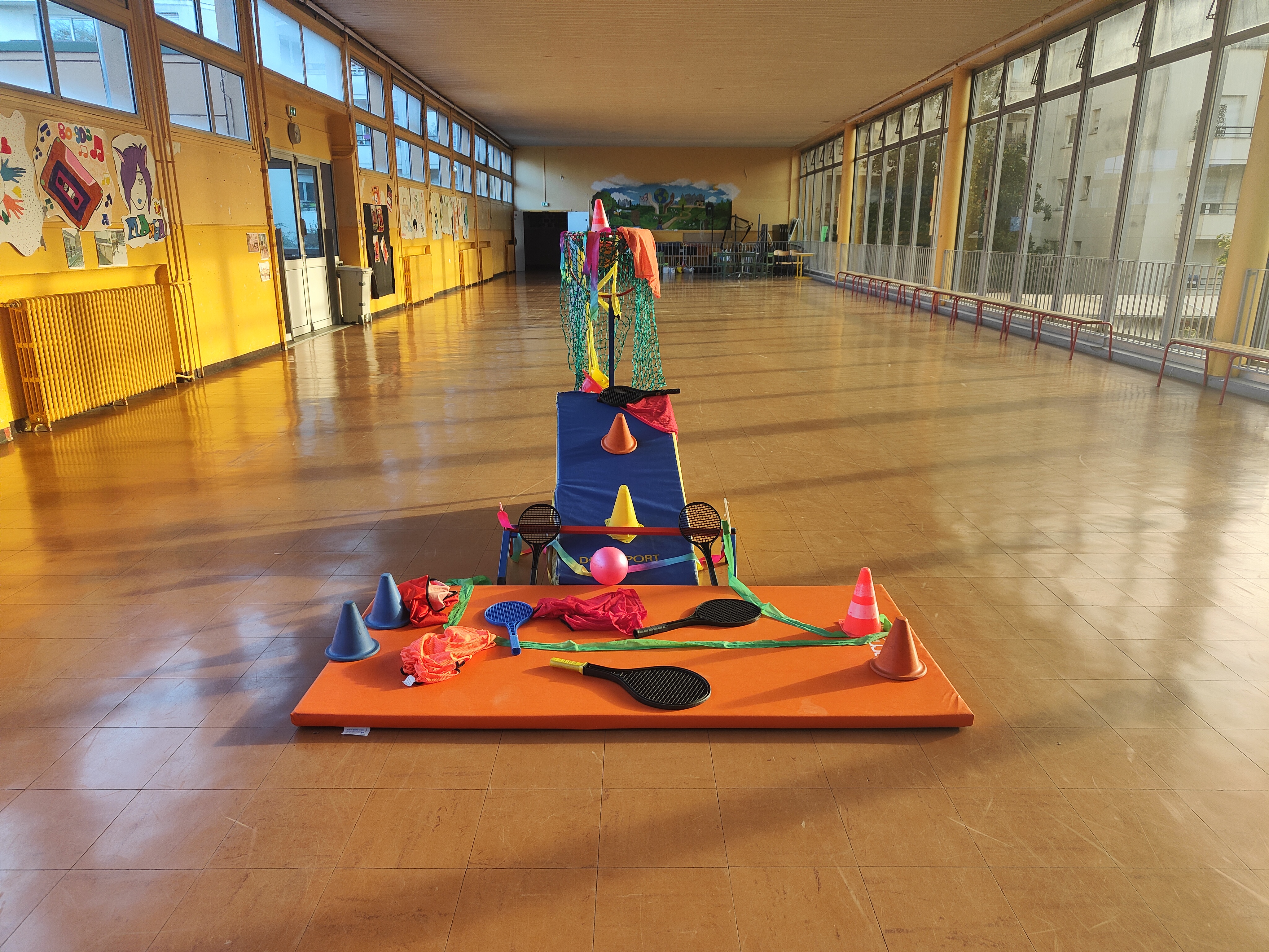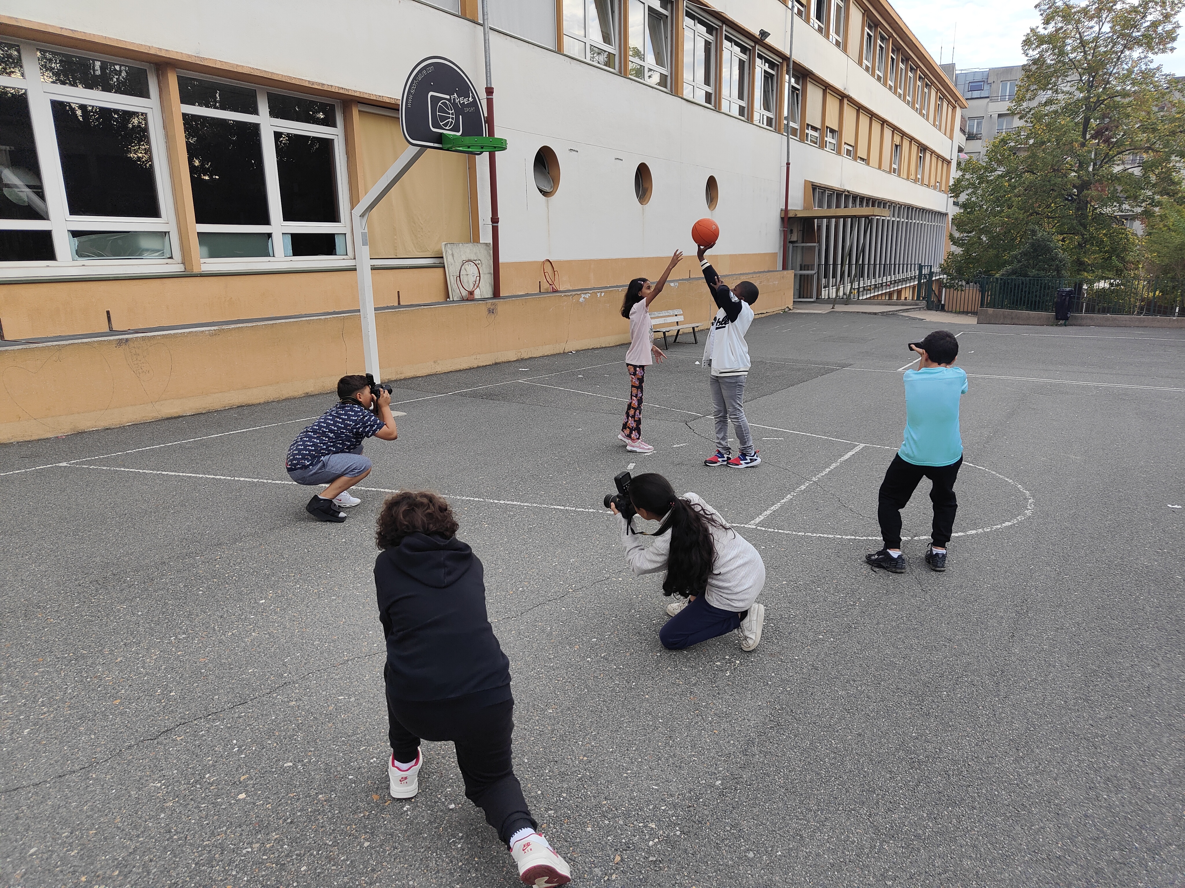Inspirés par la thématique de cette année, les photographes intervenants Rafael Serrano et Gilberto Güiza-Rojas ont débuté les ateliers de prise de vue photographique en invitant les élèves d’école primaire à observer et agencer le matériel de sport autrement. Après une première séance d’introduction au projet et d’initiation au vocabulaire photographique, les élèves ont pu créer de nouveaux objets-sculptures en combinant des objets de sport présents dans leurs écoles. Le résultat met en valeur leur aspect plastique et matériel, et leur fonction principale passe à un deuxième plan. Enfin, les élèves ont photographié leurs créations par petits groupes, étant attentif·ves à la lumière et à l’angle de prise de vue et adoptant chacun·e à son tour le rôle de photographe et assistant·e lumière.